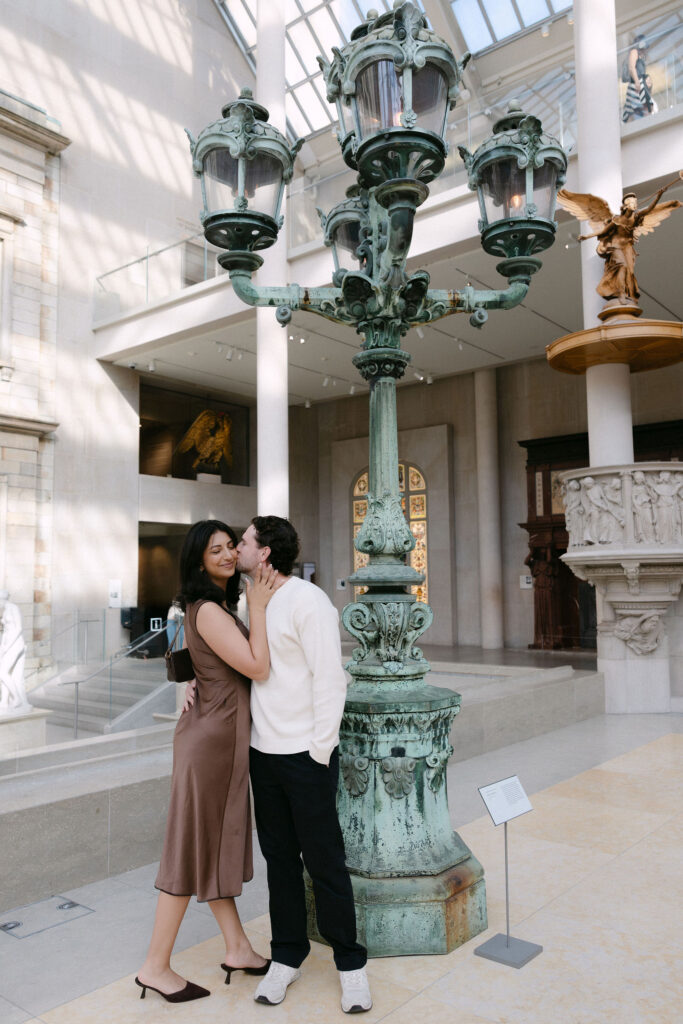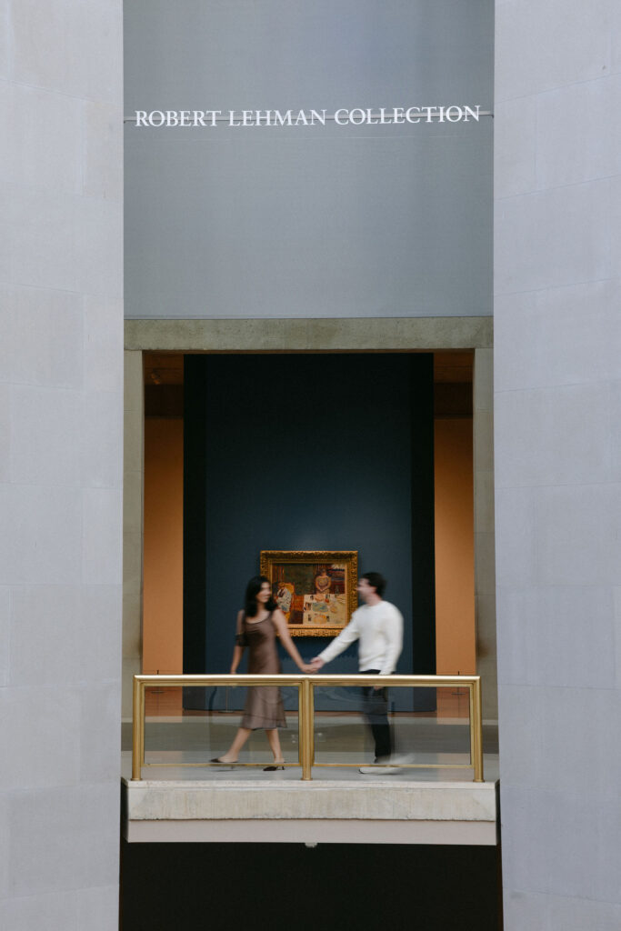 An NYC engagement session can feel like a real date — unposed, relaxed, and personal. This session started inside The Met, continued with a quiet bookstore stop, and ended with a walk through Central Park.